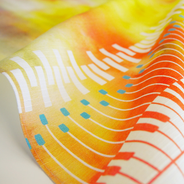 ピアノをモチーフにしためずらしいピアノ柄のデザインの風呂敷で、カラーはお客様から影向の多かった黄色をベースに作られています。