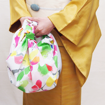 包むだけでなく、カバンの形につくくりかえることも可能です。華やかさをプラスすることでおしゃれさと今っぽさもプラスできます。