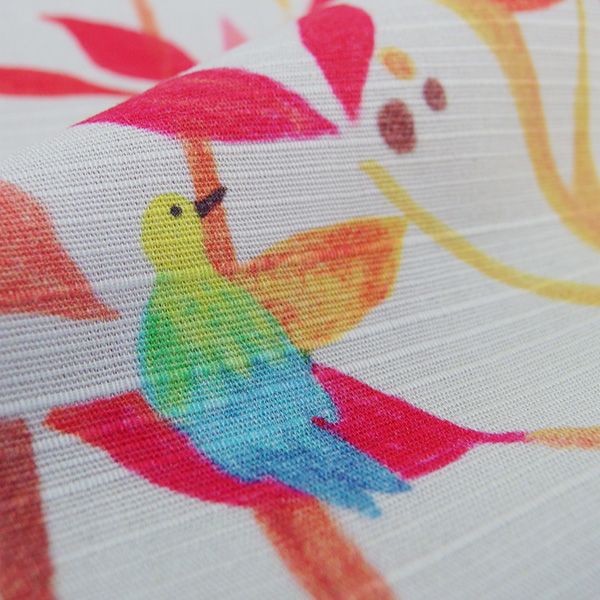 三角形が沢山並んだようなものを「鱗」、半円が沢山重なってみえる「青海波」、不老長寿のシンボル「鶴亀」など昔から意味があって語り継がれてきたものが多いですが、最近はおしゃれでカラフルなものが多く素材も正絹や綿、ポリエステル、表面に撥水加工を施したものなど様々です。